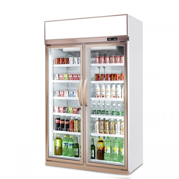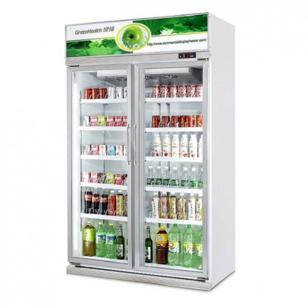 Green&health Commercial Upright Double Glass Door Display Chiller Cooler Refrigerator
